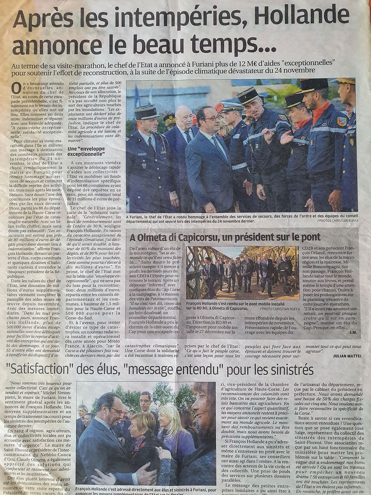 Les travaux de mise en place d’un pont provisoire sur la route départementale 80, commune d'Olmeta-di-Capocorso, coupée après les intempéries qui ont touché la Haute-Corse fin novembre, ont démarré mardi. Ils devraient durer trois jours.